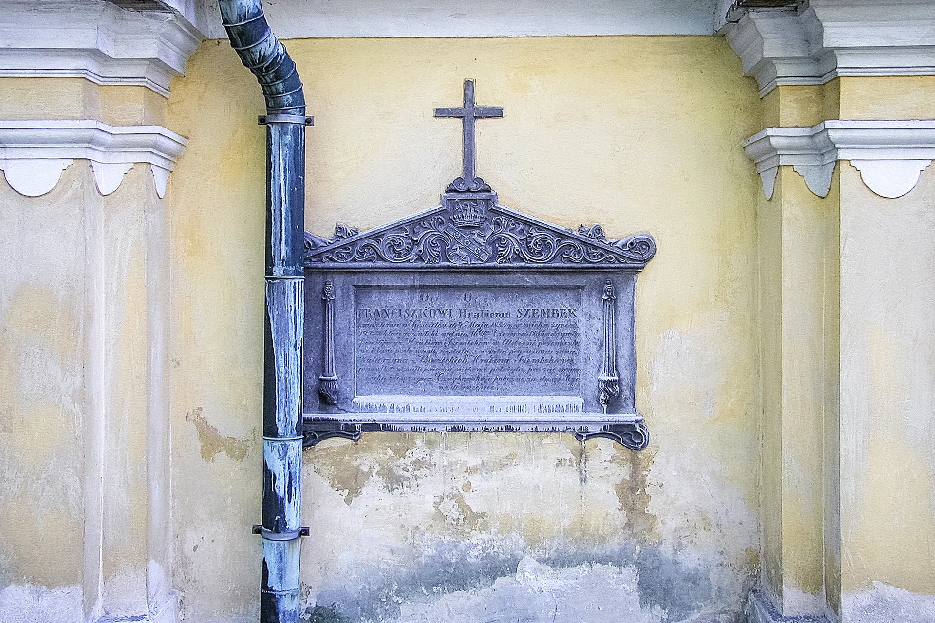 Tuż obok ołtarza wmurowano w ścianę pochodzący z początku XIX w. klasycystyczny nagrobek Aleksandra Szembeka i jego żony z rzeźbioną postacią siedzącej płaczki.